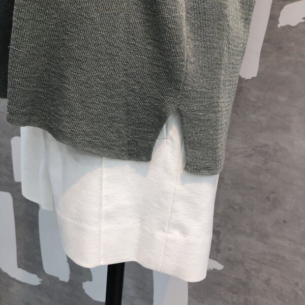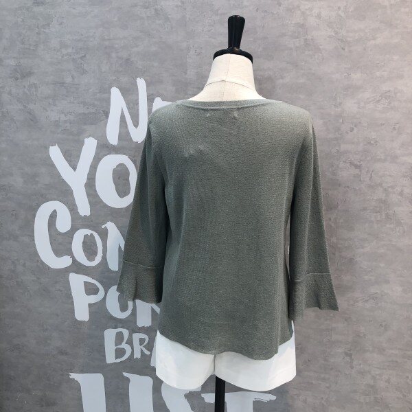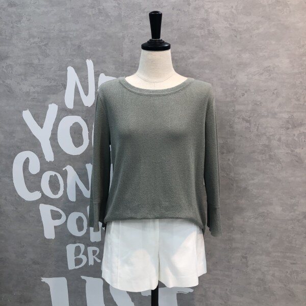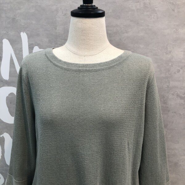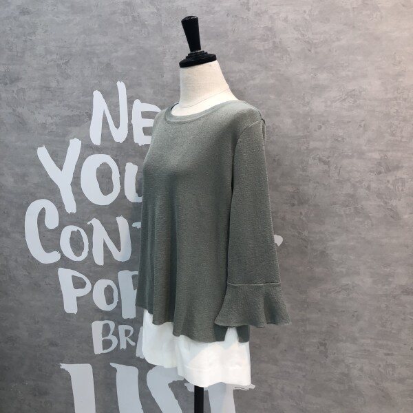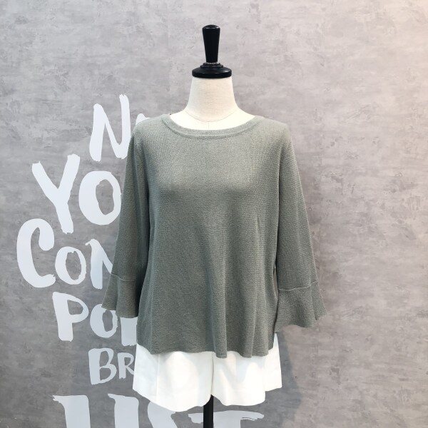 심플한 라운드형의 여성스럽고 단아한 분위기를 느낄수있는 러플소매 포인트 니트입니다