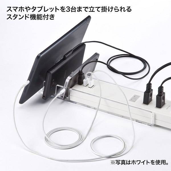 ●USB充電&スタンド機能付き複合タップ合計出力3Aスマホとタブレット同時に充電が可能雷ガード内蔵USB充電&スタンド機能付き複合タップ合計出力3Aスマホとタブレット同時に充電が可能雷ガード内蔵