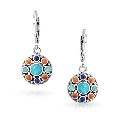 Introducing a colorful pair of dangling leverback earrings that are lightweight and easy to wear and will add a vibrant touch to any ensemble. These multicolored cluster drops are very chic and have an earthy vibe. We love the different colors and stone combinations and we are sure that you will too. This piece of fashion jewelry is made of a combination of synthetic turquoise, lapis lazuli and red coral stones that are bezel set in a pretty design made entirely of 925 sterling silver. These charming multicolor leverback drop dangle earrings will make a sweet addition to your jewelry box. Brighten your day and treat yourself to these affordable sterling silver earrings today.Feature