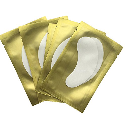 FlyItem 50 Pairs Golden Professional Lint Free Under Eye Gel Pad Patches Tips Sticker Wraps for Eyelash Extension Cosmetic Makeup Tool
