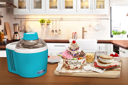 With the Mr. Freeze 1.5 pint Ice Cream Maker you can make your own great tasting frozen treats in less than 60 minutes - no pre-freezing required! Have fun with the whole family crafting homemade ice cream, gelato, frozen yogurt, sherbet, or sorbets right out of the box. This ice cream maker also has a unique feature that allows you to adjust the softness or hardness of your ice cream, so you can make it to your desired preference. Smart design makes use of operation a cinch! All you have to do is mix in your ingredients, push a button, and the thermoelectric cooling system does the rest. Gone are the messy days of hand cranking, churning ice and spilled salt. Recipes are included for fun and easy ideas to treat the whole family!Feature