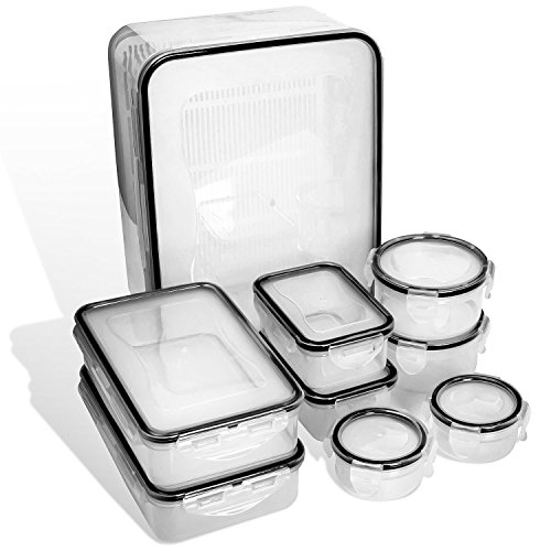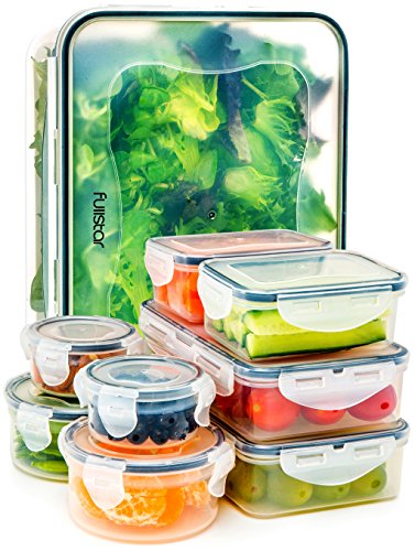 Food Storage Containers with Lids - Airtight Leak Proof Easy Snap Lock and BPA Free Clear Plastic Container Set for Kitchen Use by Fullstar (18 Piece Set)
