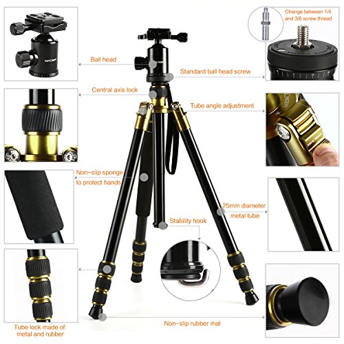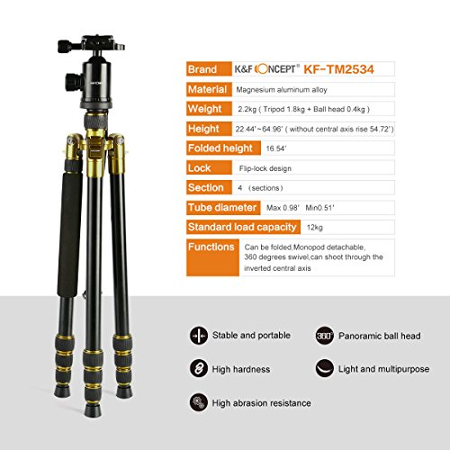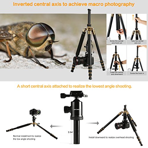 Dslr tripod legs are made of high-quality military use metal. can be folded 180 degrees reversely, easy to carry. Spiral type locking knob and plastic pull-out type button makes operation easier and quicker, better durable and abrasion resistant.