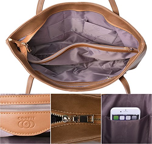Tote Handbags,Coofit Fashion Purses and Handbags for Women PU Leather Purse Tote Bag Brown