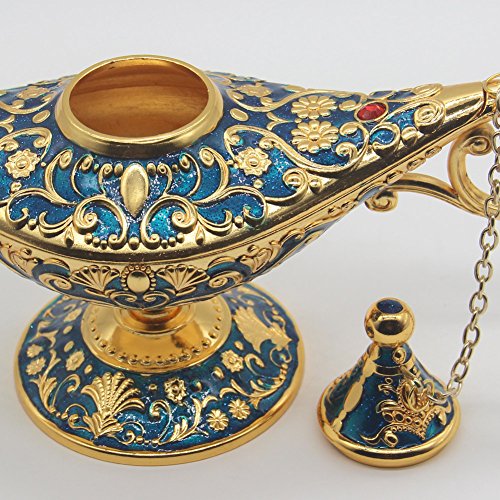 AVESON Luxury Classic Vintage Collectable Rare Legend Aladdin Magic Genie Costume Lamp Home Table Decoration & Gift, Golden Blue