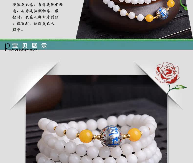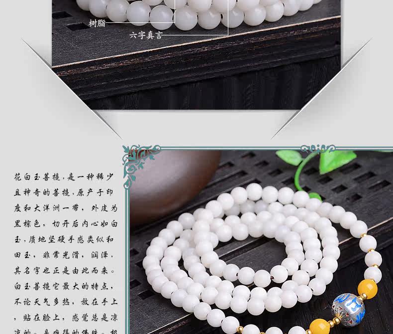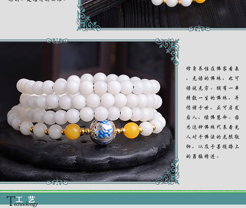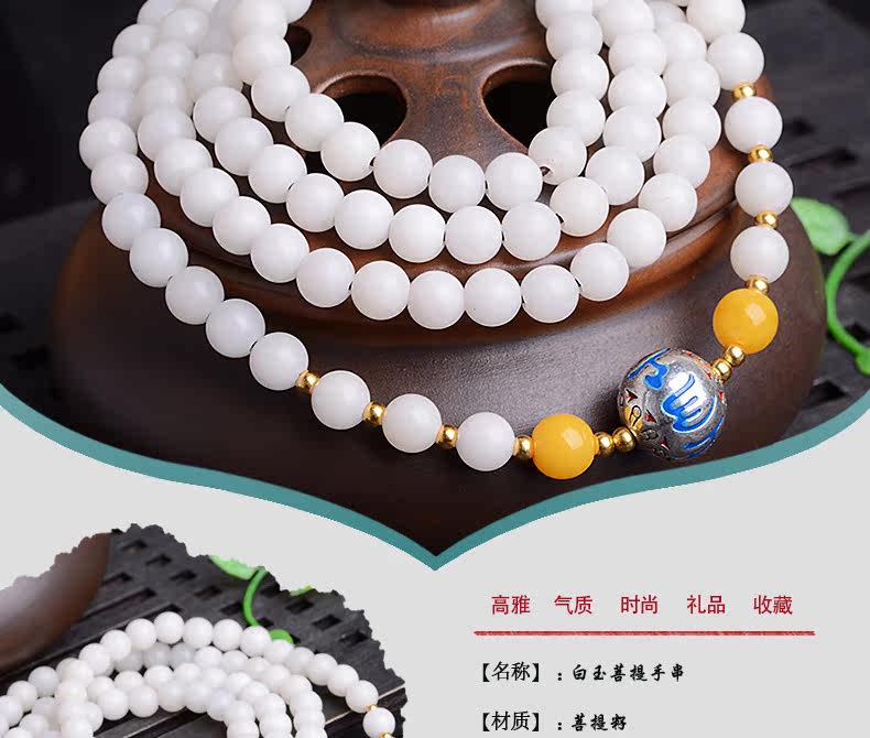 开光干磨高密藏式佛珠手串白玉菩提根手链多圈菩提子男女饰品