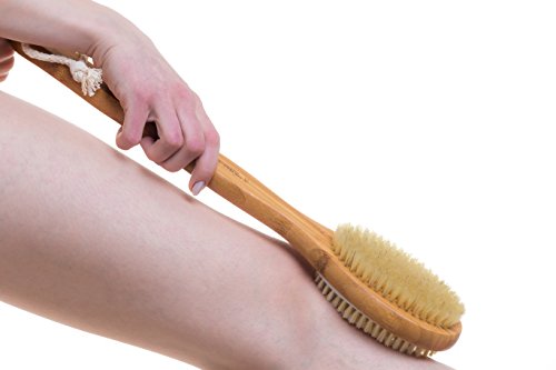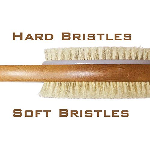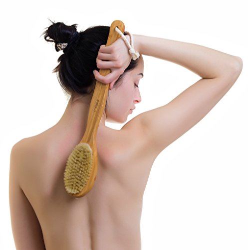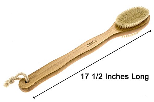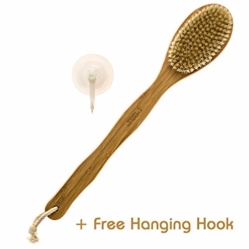 Body Scrubber with Extra Long Handle - Double Sided Bamboo Dry Body Bath Brush - All Natural Boar Bristles + FREE Hanging Hook!