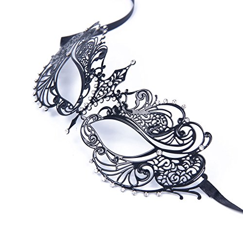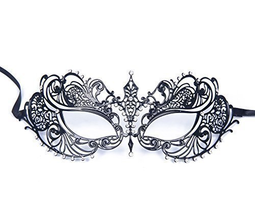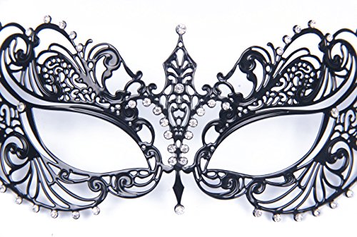 -. Feature : Very light weight to wear. Laser Cut Luxury with Rhinestone / Pretty Luxury Masquerade Masks - Venetian Ball Masks / Venetian Metal Black Laser-Cut Mask with Rhinestones / Hand made, Venice style, using the metal laser cut craft / Decorated with shinning Rhinestones and finished with two black silk ribbon ties.