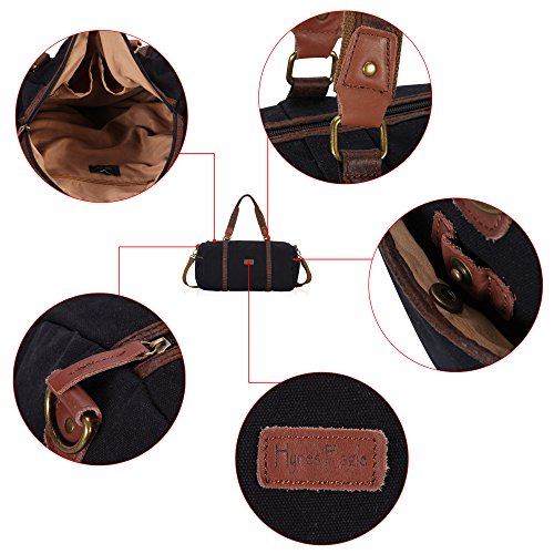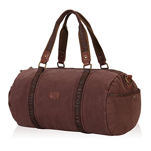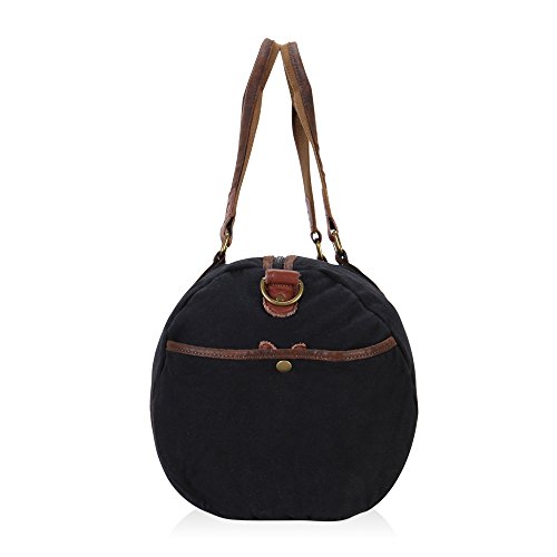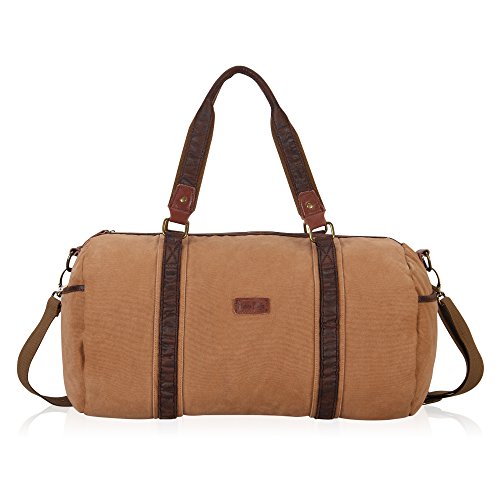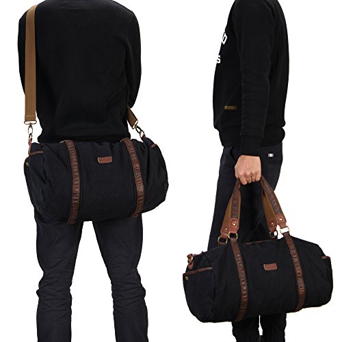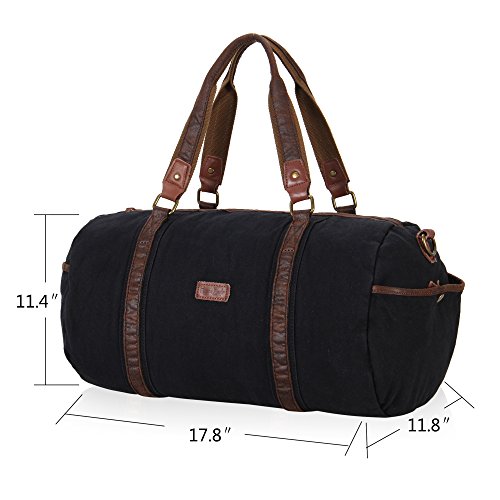 -. Feature : ✔ HIGH QUALITY MATERIAL - 90% eco-friendly, soft, durable washed cotton canvas / 10% durable leather trim / 100% pure cotton lining / Bronze hardware / ✔ GREAT SIZE FOR TRAVELING - Product Dimensions: 17.7H x 11.8W x 11.4D inch / Weight: 2 pounds / Capacity: 30 Liters / Would work great as a carry on while flying, on the train, on the bus, or in any form of transportation / ✔ BIG AND SPACIOUS WEEKEND BAG - Large main compartment with top zipper closure, generous enough to accommodate your books, notes, supplies or clothing , etc / Features with 2 quick-snap side pockets for easy accessibility of your frequently used items / Interior : 2 slip pockets and 1 security zipper pocket to hold valuables / ✔ MULTIFUNCTIONAL CARRYING OPTIONS - Removable and adjustable shoulder strap for crossbody or over the shoulder wears, and also has a built in handle on top for hand use / ✔ STYLISH DESIGN - With vintage look and casual life style , this Flight Friendly Bag / Holdall / Carryall /Overnight bag/ Gym Tote Bags /Sports Duffel Bag / Carry on Lage fashionable enough to take with you to the office, school, camping, hiking, travelling, sports, gym, holiday or any short travel adventures ,yet also casual enough to wear for everyday use
