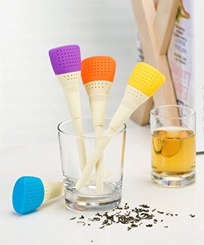 TUNCILY HOME SILICONE TEA INFUSER SET OF 4 - COLORFUL & BEAUTIFULLY DESIGNED CUTE CREATIVE SILICONE TEA STRAINER FILTERS. PERFECT TOOL TO BREW YOUR ORGANIC GOURMET GREEN TEA FROM LOOSE TEA LEAVES.