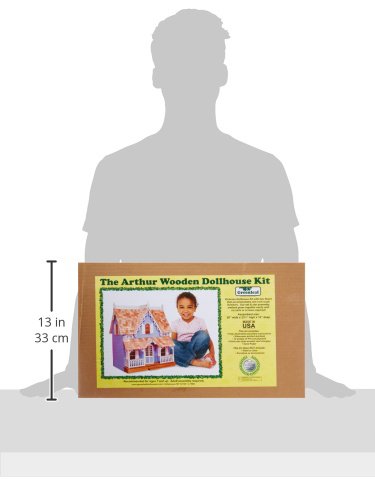 GREENLEAF-The Arthur Dollhouse Kit. A long-time favorite of Greenleaf customers; the Arthur is a wonderful little house for the new collector. Features include silk-screened windows; a quaint front porch; and four ample rooms. Gingerbread trim on the ridge and roof makes this cottage especially appealing. Shingles included; siding not included. Measurements: Kit: 14x22x2-1/2 Inch; Set Up: 23-1/2x18x13 Inch. Made in USA.Feature