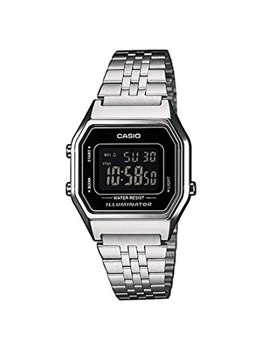 ladies watch, brand Casio model code la680wa-1bdf. 28mm case size, made of steel linked to a beautiful color steel strap silver. Quartz movement with sliding lacing.