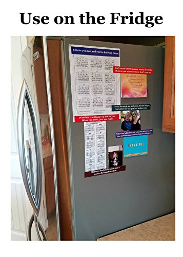 LARGE PRINT MAGNETIC QUOTABLE REFRIGERATOR MAGNET STRIPS: Home and Beyond Magnetic Strips are 1 inch wide x 8 inches long and the print is large enough to see from across the room so that you do not have to squint to see these inspiring words. They are also strong enough to hold up papers or any reminders that you want to keep on the fridge.