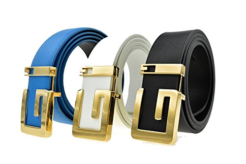 -. Title : New Arrival Male Cowskin Leather Casual Solid Gold G Buckle Belt Men