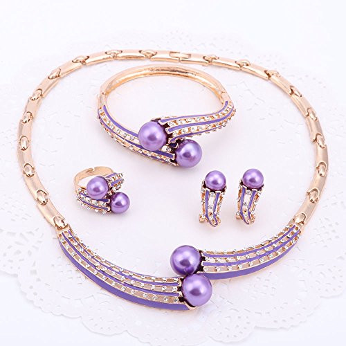 Fashion Pearl Necklace Earrings Bangle Ring Crystal Wedding Bridal Jewelry Sets