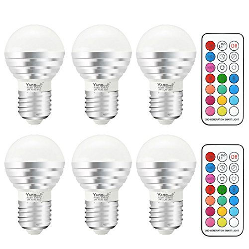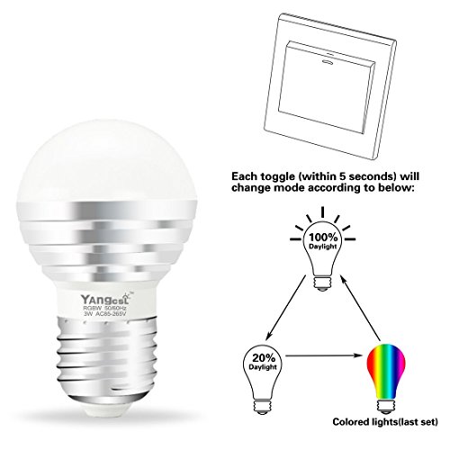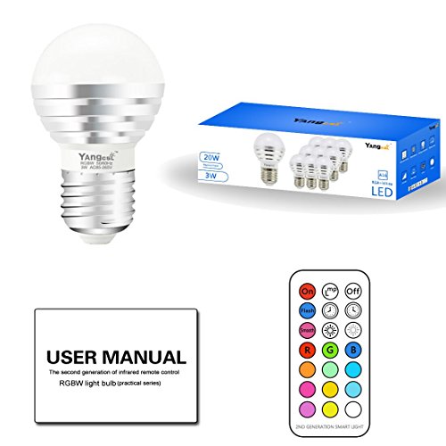 Yangcsl 3W Timing Remote Controller RGBW Color Changing LED Light Bulbs, Double Memory and Wall Switch Control, RGB + Daylight White, 20W Incandescent Bulb Equivalent (Pack of 6)