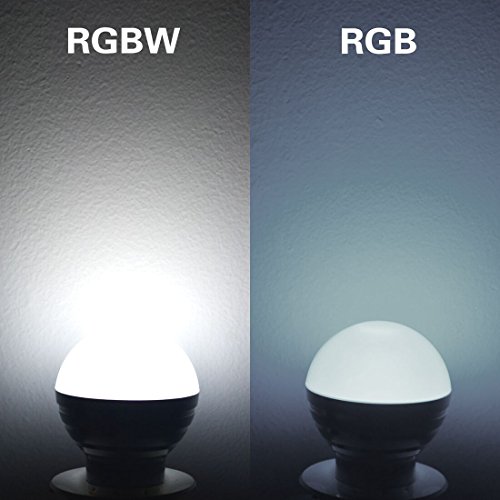 RGBW bulb: It owns independent LED RGB lamp beads which can issue a colorful effect and give you a romantic or dynamic atmosphere. It has an independent white light bead which contains no variegated color, just pure white (much purer and brighter than normal white light), mainly for daily lighting or auxiliary lighting.
