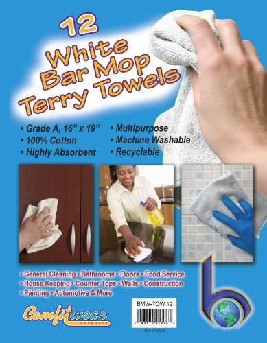 White Cotton Bar Mops, Terry Towels, 16" X 19" 1 Dozen