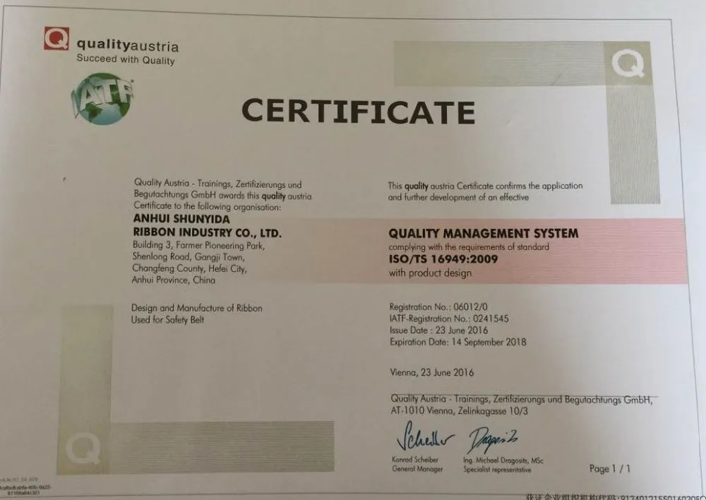External Testing Certification:ISO9001