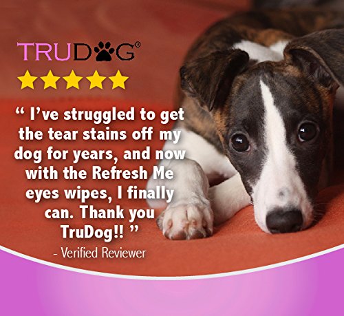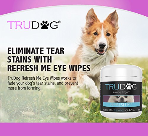 -. Feature : DISSOLVE TEAR STAINS: With a unique blend of ingredients, Refresh Me eye wipes gently dissolve tear stains. / PREVENT FUTURE STAINS: Natural ingredients work to prevent future eye stain buildup. / EASY TO USE: These easy-to-use dog eye wipes work effectively, requiring a simple wipe and rinse to keep your pooch's face clean and clear. / CLEAN AND IMPROVE HAIR: With moisturizing ingredients and protective properties, your dog's hair becomes cleaner and healthier. / 100% SATISFACTION GUARANTEE: With a 100% satisfaction guarantee, you can try TruDog Refresh Me Eye Wipes risk free.