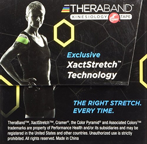 -. Feature : Unique breakthrough XACT Stretch Indicator gives a visual indicator to ensure the right stretch is applied every time and eliminates misapplication so beginners & experts can watch the P.R.Inted icons and know they indicate a 25% or 50% tension stretch / High quality, clinically tested, allergy tested, non-latex, non-irritating, water resistant tape provides durable support for up to 5 days to provide pain relief and support muscles and joints without immobilizing them or limiting range of motion / 98% Cotton, 2% Spandex specially designed elastic tape features best in class adhesion to stick every time, critical for high performance athletes in activities like Swimming, Running, Volleyball, Cross fit, Football, Basketball, Baseball and Soccer / Use TheraBand Kinesiology Tape with confidence because TheraBand has assembled, analyzed, summarized and shared over 300 research references and taping techniques for your use with this high quality tape, a FDA registered class 1 medical device / Tape can Last up to 5 days; All products are Latex Free