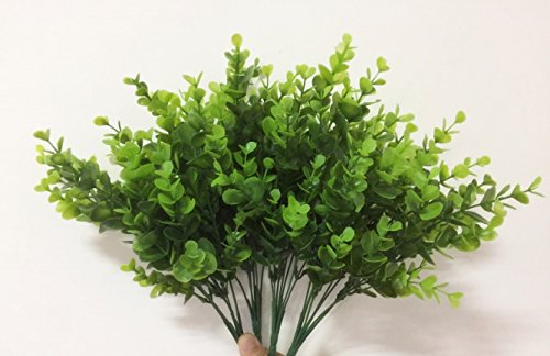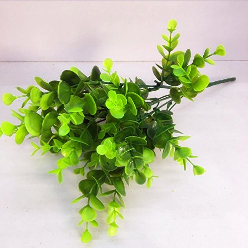 - 4 pack,1pcs bush with 7 stems,each stem have 5 small stems,Total 35 stems .Add color and fullness to any flower arrangement with this artificial plastic plants in green.(Only plants, not including pots).