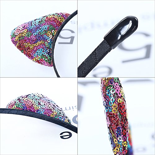 - SPARKLE CAT EARS HEADBAND - Go with 6 piece different color glitter cat headband.(Include:black,white,pink,glod,rose red,multicolor).They are in the shape of cat ears, cute and pretty, sexy and nifty, naughty yet innocent, multiple temptation together wearing this hair hoops.