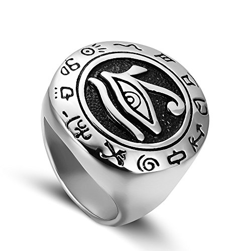 -. Title : JAJAFOOK Men's Silver Stainless Steel Egypt Eye of Horus Symbol of Protection Ring Round Signet Jewelry