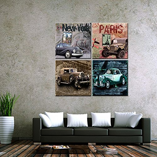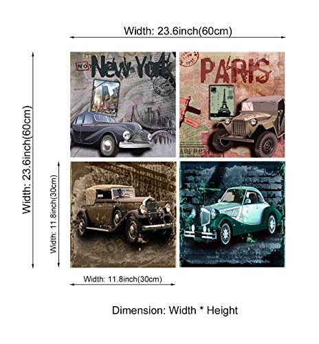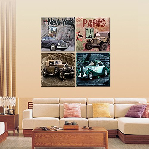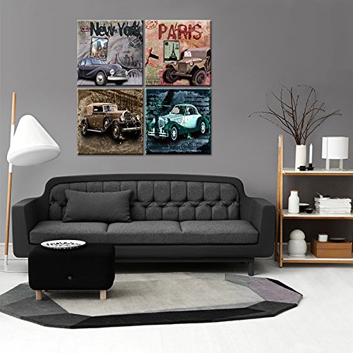 -. Feature : Paintings Size: 11.8*11.8 inch*4pcs, Please choose the right wall hanging based on the approximate area of the painting / Subject: car stamps 4 panels / Material:anti-corrosion mothproof solid wood frame, senior canvas cloth / Built-in metal hook, installation is simple and convenient / Top quality canvas P.R.Ints. A perfect wall decoration for living room, bedroom, office, hotel, dining room, kitchen, bar etc.