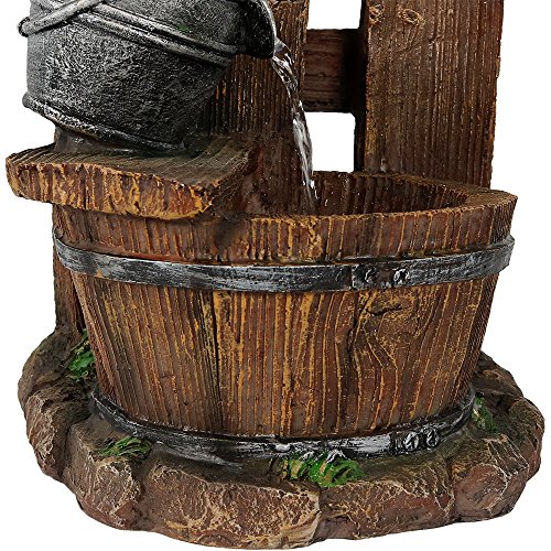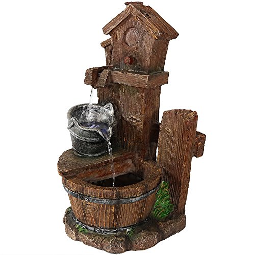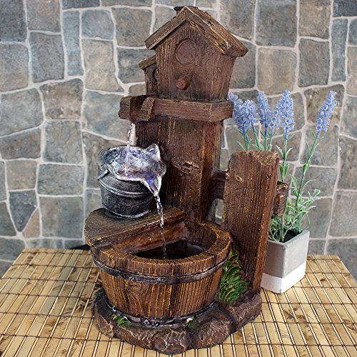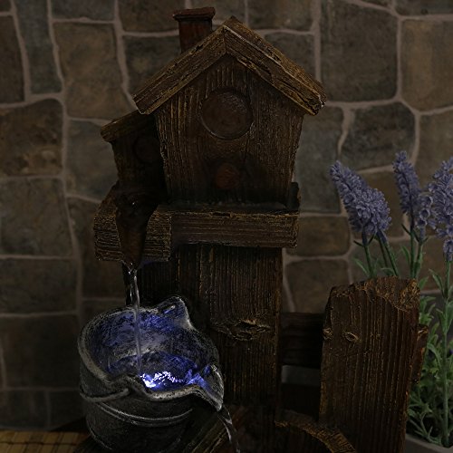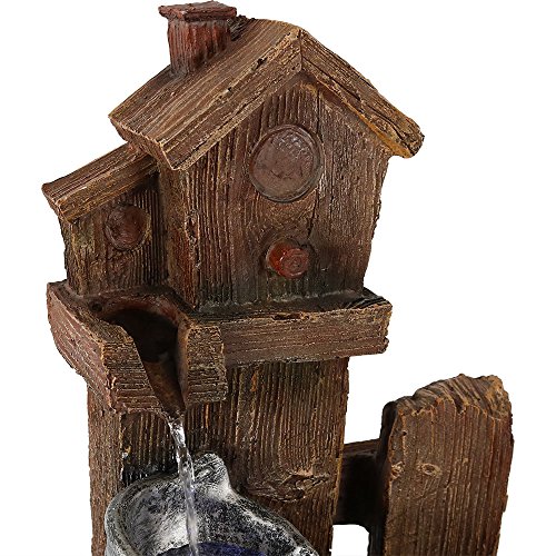 Sunnydaze Birdhouse and Silver Bucket Tiered Indoor Tabletop Fountain with LED Light, 16 Inch
