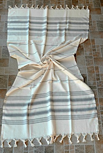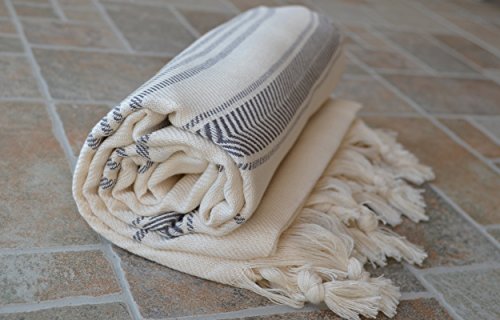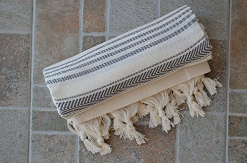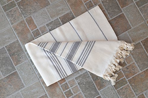 Dandelion - Ivory Basic Pattern - Naturally-Dyed Cotton Turkish Towel Peshtemal - 71x39 Inches - Gray