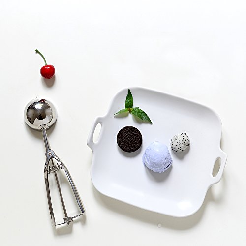 Easy to use: Smooth squeeze handle system, no platen or lever. You can effortlessly scoop out the perfect ice cream ball, sleek no damage, very simple and perfect.