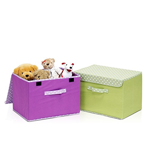 - Feature : Foldable basket set provides attractive, lightweight solution to many storage needs / Features large-capacity bins with lid that keep toys, games, art/craft supplies, clothes, books and more / Keep in the kids room, family room, or any room in the house that could use extra storage / Bins fold flat when not in use; made of non-woven polypropylene and paperboard / Sold in set of two. Color options available. Unit dimension: 15-inch(w)x10.6-inch(h)x10.6-inch(d)