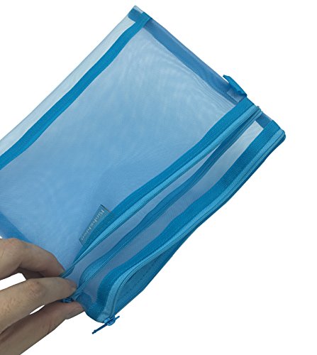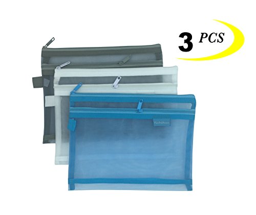 Kinhshion Zipper Pouch, Mesh Traveling Storage Bag, 3 PCS , A5 Size 8.8"×7" ( Colour Random ) (506)