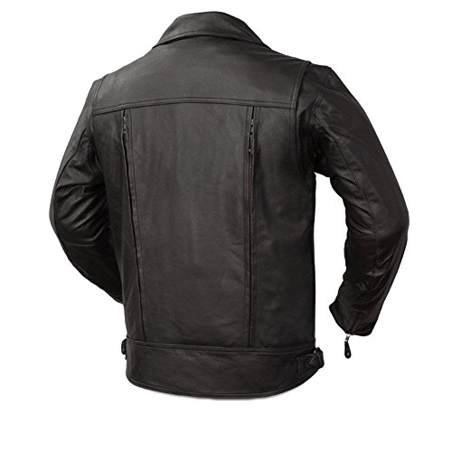 Studio : First Manufacturing Publisher : First Manufacturing Binding : Automotive Product Description First Classic Utility Cruising Jacket offers six zip pockets for endless storage possibilites! Hop on your "hog" and rip up the road in this Utility Cruising Jacket! With genuine leather outside, plus a six-pack of zipper pockets for storage, we can't imagine a more versatile, stylish option. Dual full length utility pockets, 2 additional front pockets, 2 inside pockets for ultimate storage possibilities; Dual full length 14" vents on front built into utility pocket design; Dual 14 " vertical vents on back with heavy mesh inner liner for full ventilation; Front zipper slider for comfortable riding posture; Covered plastic zippers; Buckled side tabs for additional waist adjustment; Action back with stretch panel in liner arms for comfort while riding; Zip-out, full-sleeve, high performance insulated thermal liner for extra warmth. Removable liner uses heavy duty long lasting black polyester lining with custom First Classic Orange Mesh trimming and First Classic Orange label; Heavy snaps and original YKK zippers; non-rust, non-corroding.; State Size. Order yours today! Men's First Classic Utility Cruising Jacket, Black 0