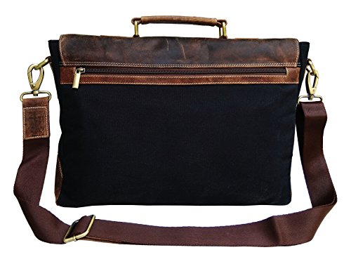 -. Title : Genuine Leather Vintage 15.6" Laptop Canvas Messenger Satchel Bag