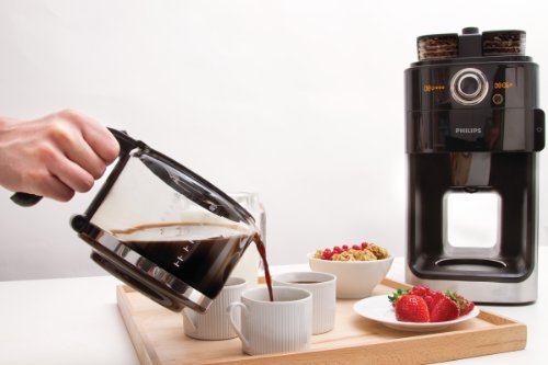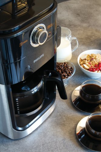 Philips HD7762/00 Grind&Brew Kaffeemaschine, schwarz/Metall, doppelter Bohnenbehalter