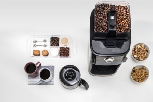 Doppelte Bohnenbehalter und integriertes Mahlwerk: Auf der Oberseite des Gerates befinden sich zwei Bohnenbehalter fur die Auswahl zwischen oder die Mischung von 2 Bohnensorten. Der Mahlgrad im integrierten Mahlwerk ist wahlbar.