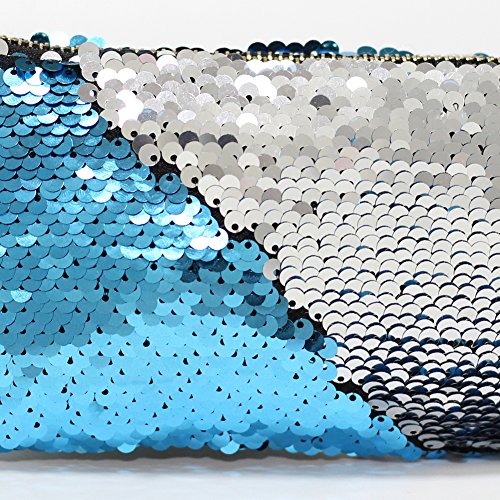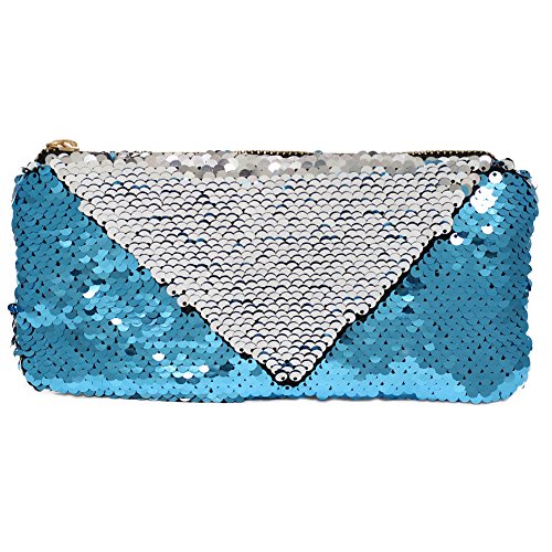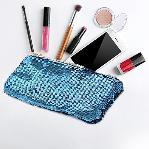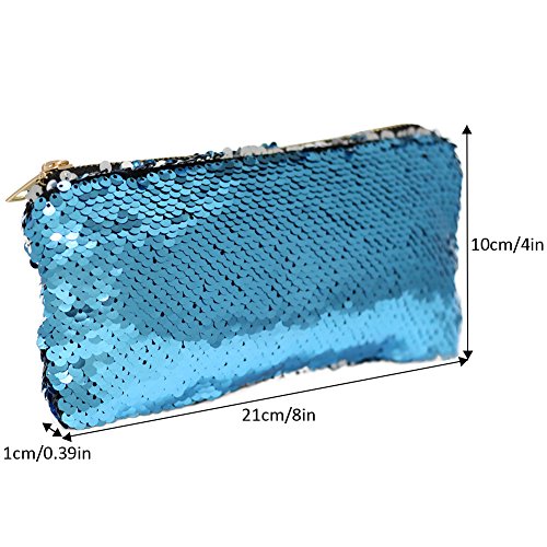 - SIZE: 8"x4"x0.39"(21x10x1cm); Material: polyester and sequins; Color: Hotpink/Silver, Blue/Pink; Package included: 1 PC of Sequin Makeup Bag