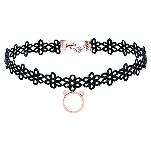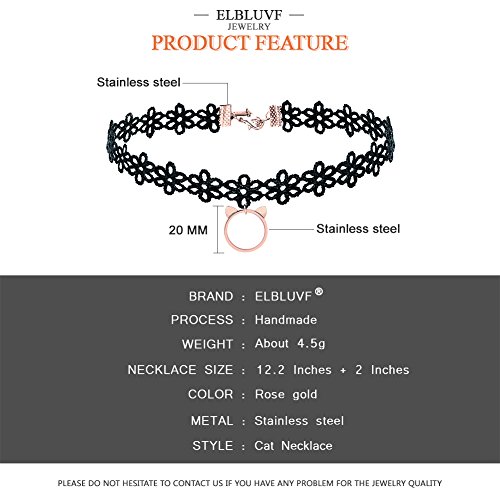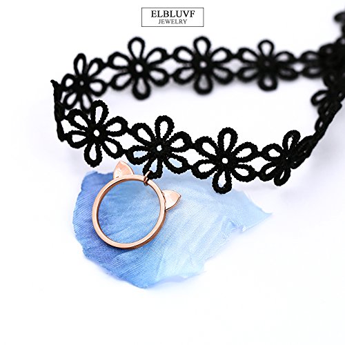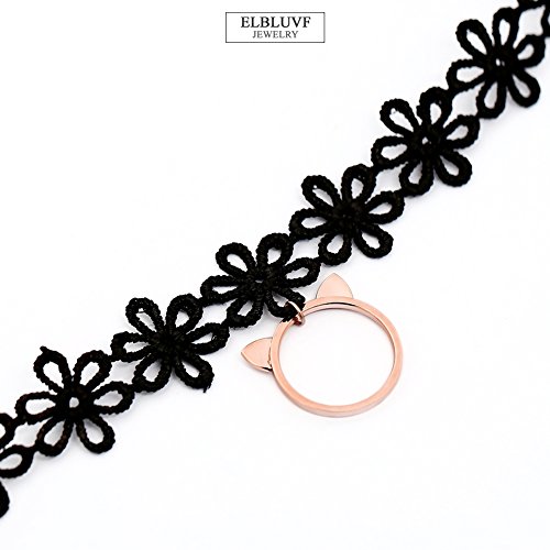 ELBLUVF Stainless-steel Rose Gold Plated Flower Lace Cat Black Chocker Necklace Cat Chocker Necklace