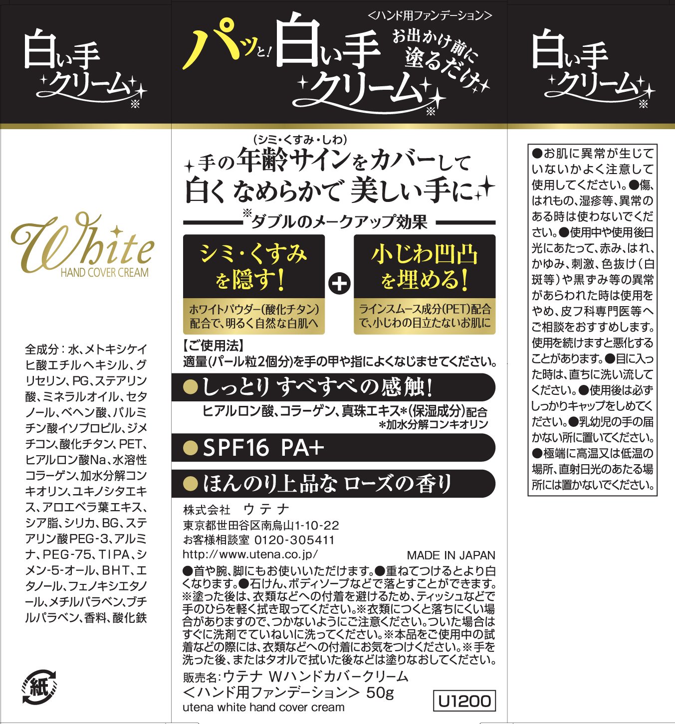 White hand cream W hand covering cream 50g