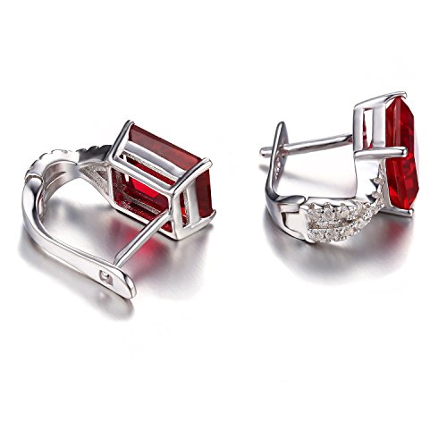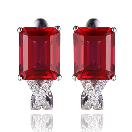 -. Title : Jewelrypalace 女性 赤い 人工 ルビー 7月 誕生石 スクエア シャイプ クリップ イヤリング セット ユニーク デザイン 人気 925 スターリングシルバー ピアス