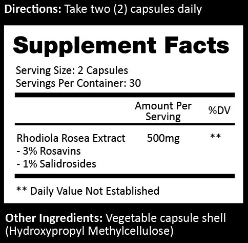 No additives, no chemicals, no rice powder or other cheap filler ingredients — each capsule simply contains 100% rhodiola rosea extract