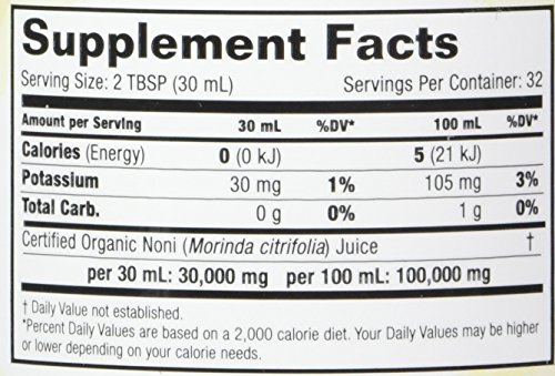-. Feature : 100$ Pure, Natural Certified Organic Tahitian Noni Juice. / Provides 12,500 mg of Noni Fruit per 1 ounce serving! / Contains naturally occurring minerals, enzymes, antioxidants, vitamins, phytonutrients, and bioflavanoids. / No preservatives, No Pesticides, No Artificial Colors, No Fertilizers / Rich in Proxeroxine and Scopoletin