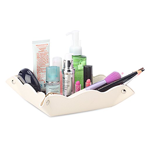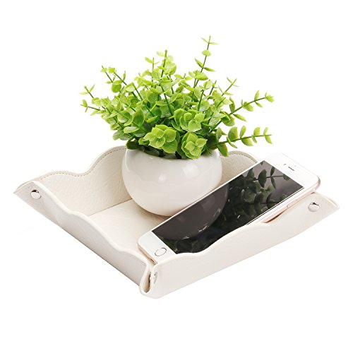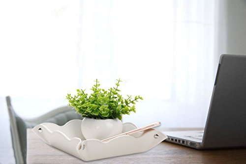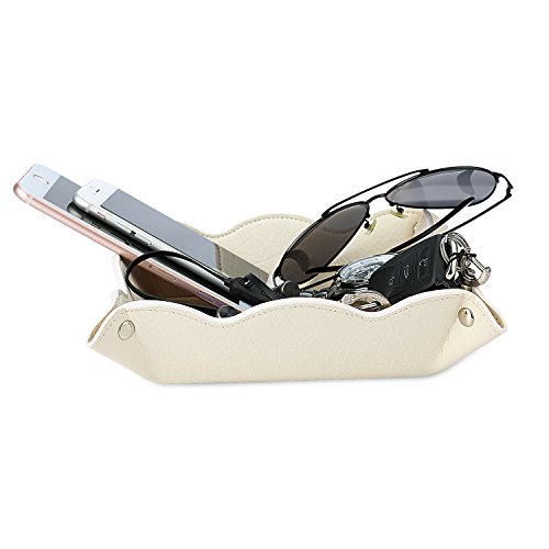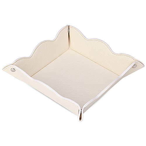 LISRSC Multifunctional Leather Storage Tray (Ivory White)