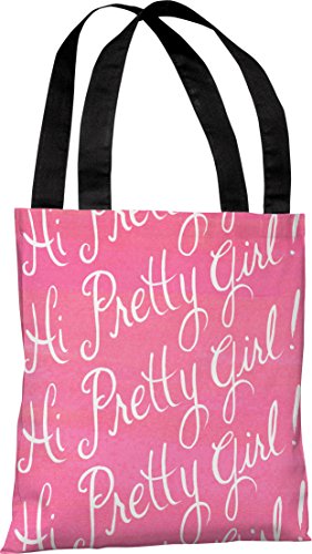 One Bella Casa Hi Pretty Girl/Bows Tote Bag by Timree Gold, 16"x 16", Pink/White