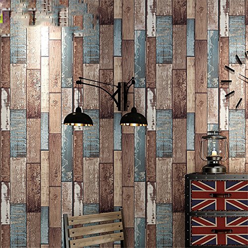 - Faux Multicolored Vintage Wood Textured Wallpaper, High Standard Vinyl Coated Quality