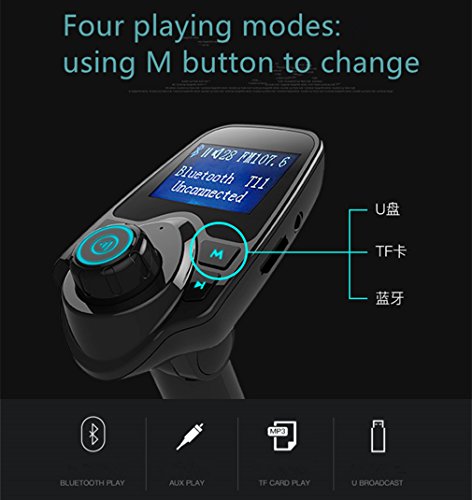 Large Screen: this bluetooth MP3 car music player has a big screen on it, able to show the incoming call phone number, songs name playing, channel Hz, battery situation, etc.