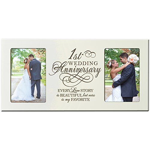 Honor the happy couple with a personalized 1st wedding anniversary photo frame with the laser engraved verse: Every Love Story is beautiful but ours is my favorite . A treasured and lasting personal keepsake for wedding or anniversary. 1st Anniversary picture frame can be hung on wall or displayed on table. This special keepsake anniversary gift will always be a wonderful reminder of the love that you have for one another. Honor the happy couple with a 1st wedding anniversary decorative wood photo frame holds 2- 4x6 photos. Words are laser engraved.Feature