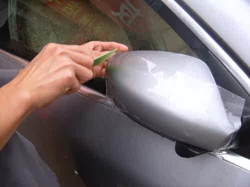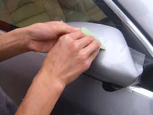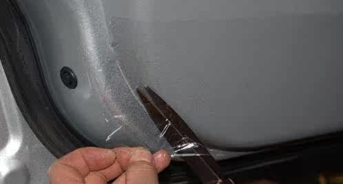 Two, the film and the door trim shape to make a comparison, cut the excess part,